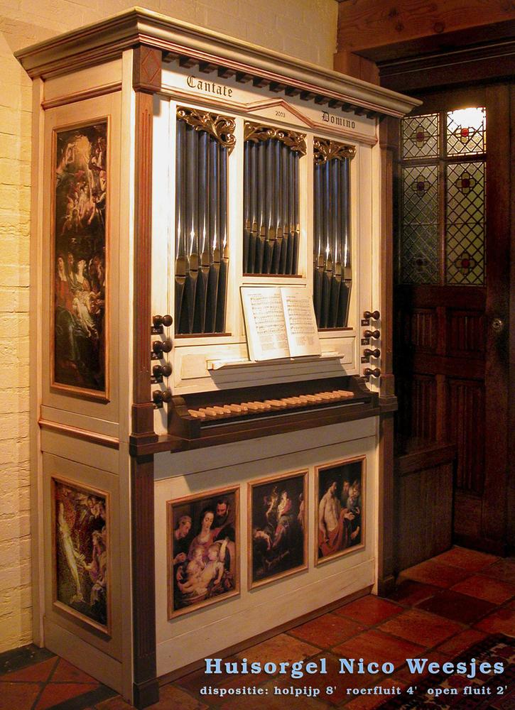In 2002 begon Nico Weesjes aan de bouw van een pijporgel. De Stichting Huismuziek organiseerde de cursus ‘Bouw van een Pijporgel’. Dit was iets dat Nico al lange tijd wilde doen. Hij is een echte orgelliefhebber, maar vindt het vooral leuk om zijn handen te gebruiken. Iets wat hem overigens niet onverdienstelijk afgaat. Zo bouwde hij zijn eigen huis en ontwierp hij onder andere het interieur van Bibliotheek De Omslag in ons dorp.